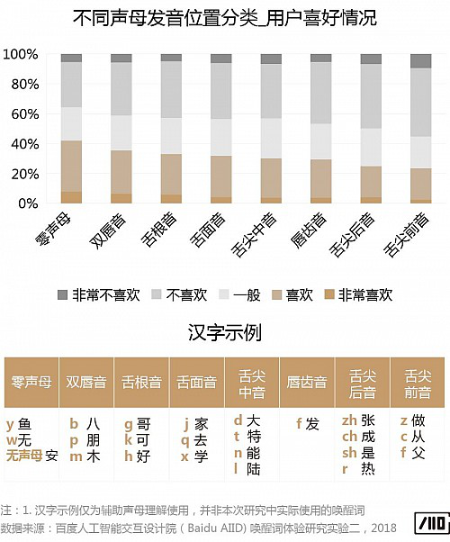 聲母:用戶更加喜歡尾音聲母為零聲母,而包含了z、c、s的舌尖前音最不被用戶所喜歡;