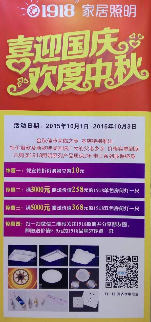 迎國慶、1918照明大促銷!