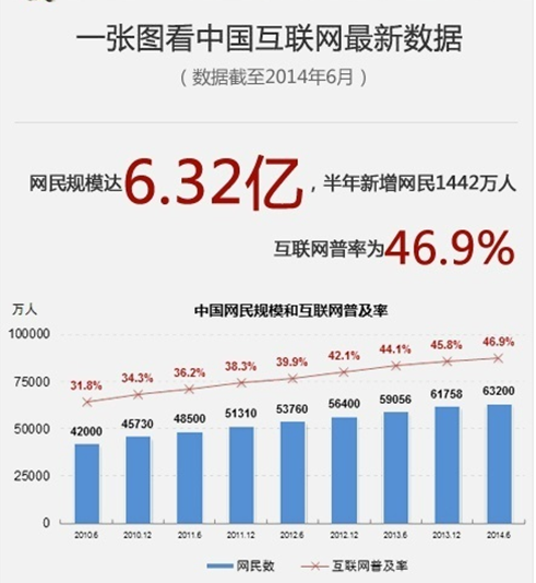 中國互聯(lián)網(wǎng)信息中心CNNIC發(fā)布報告顯示,截至2014年6月,我國網(wǎng)民規(guī)模達6.32億,互聯(lián)網(wǎng)普及率為47.9%。其中手機網(wǎng)民達5.27億,較2013年底增加2699萬人,網(wǎng)民中使用手機上網(wǎng)的人群占比提升至83.4%,相比2013年底上升了2.4個百分點。我國網(wǎng)民年齡分布囊括了從10歲到60歲之間的人群,隨著互聯(lián)網(wǎng)信息技術(shù)不斷普及,年齡區(qū)間跨度將會越拉越大。移動終端上網(wǎng)的用戶已經(jīng)超過通過PC上網(wǎng)的用戶。客戶購物越來越容易,占用的時間越來越碎片化。