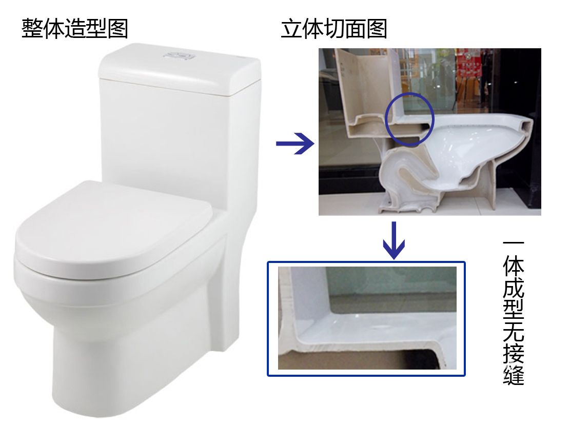 6、連體馬桶造型現(xiàn)代一些,相對(duì)分體水箱位低,用的水稍微多一些,價(jià)格比分體普遍高。連體一般為虹吸式下水,沖水靜音,因其水箱連在主體一起燒制,容易燒壞,故成品率較低。由于連體水位低,所以一般聯(lián)體的坑距短,為的是增加沖洗力。連體不受坑距的限制,只要小于房屋坑距就行。