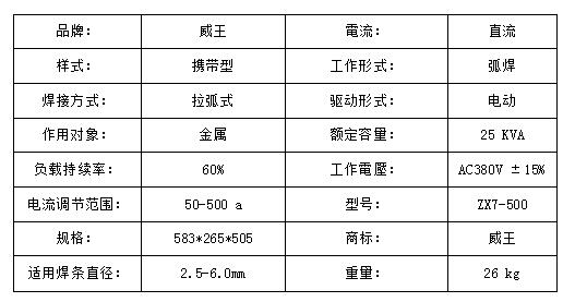 威王工程專用機焊機ZX7-500參數表
