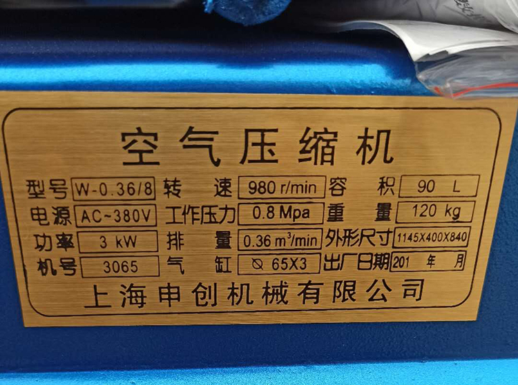 申創(chuàng)活塞式空氣壓縮機w-0.36/8參數(shù)
