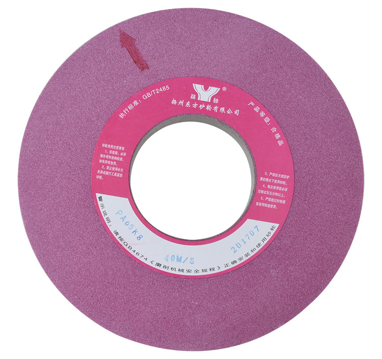 東方磨具鉻剛玉砂輪硬度與白剛玉相近,韌性則比白剛玉高,磨粒切削刃鋒利,棱角保持好,耐用度較高。