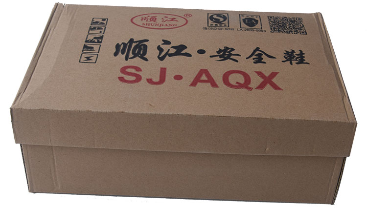 順江牌勞保鞋鋼包頭防砸防刺穿壓花牛皮安全鞋工地勞保工作鞋包裝簡約大氣