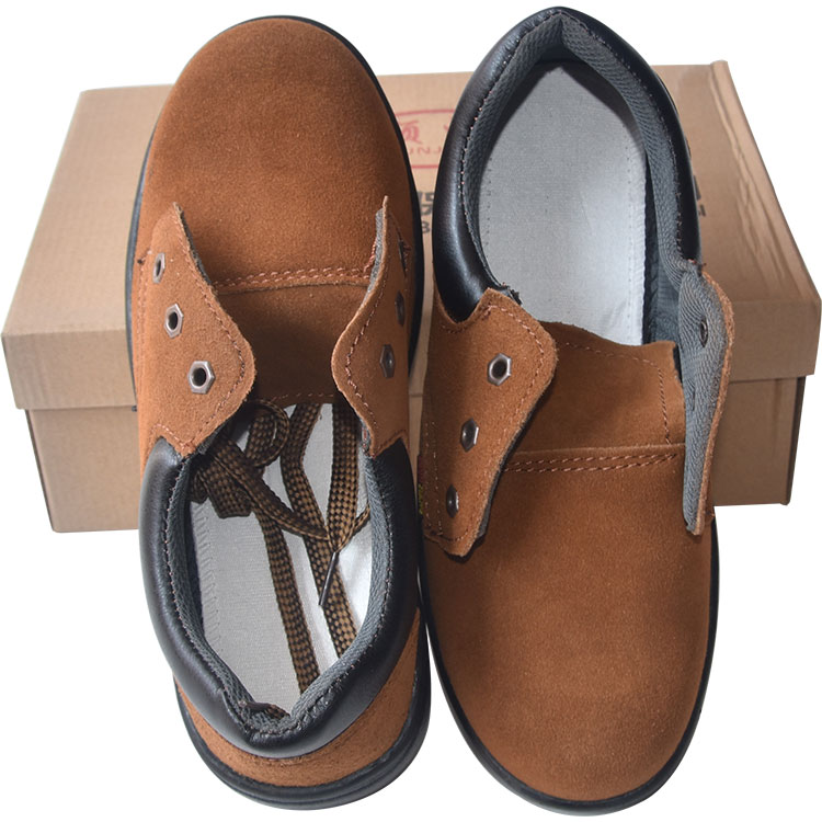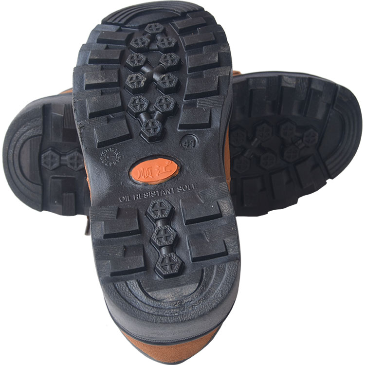 安全鞋鞋面為反絨牛皮材質(zhì),防砸防刺設(shè)計,鞋頭內(nèi)置鋼包頭防砸設(shè)計,鞋底內(nèi)置鋼中底防穿刺設(shè)計。