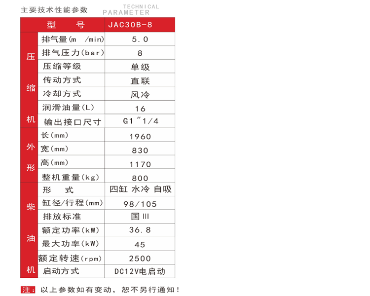 紅五環(huán) JAC柴動(dòng)系列工程專(zhuān)用螺桿空壓機(jī)