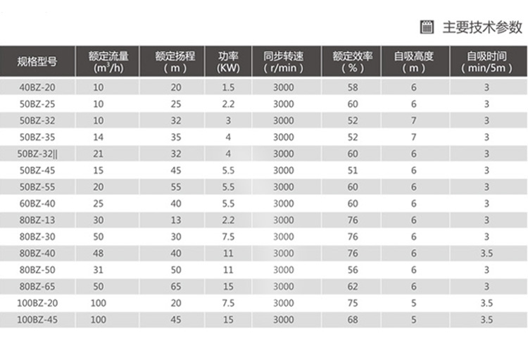 離心泵BZ/ZX自吸式離心泵參數圖