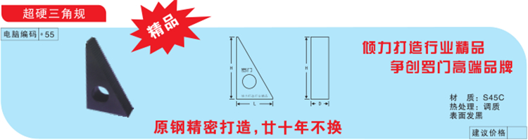 超硬三角規材質S45C,熱處理調質,表面發黑。