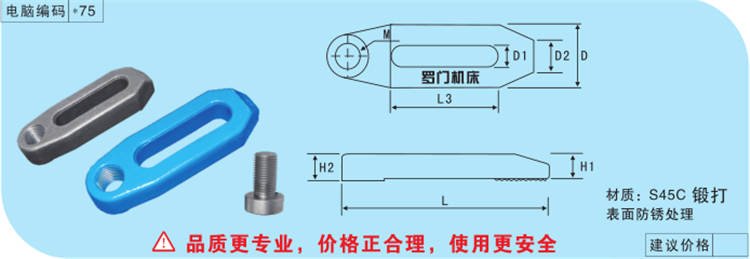鍛打機床壓板材質S45C,鍛打,表面防銹處理。