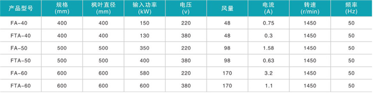 揚(yáng)谷風(fēng)扇主要參數(shù)