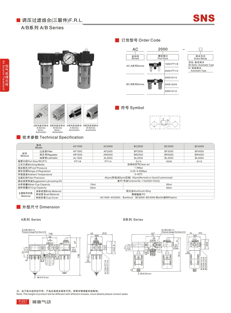 A/B系列調壓過濾組合(三聯件)技術參數