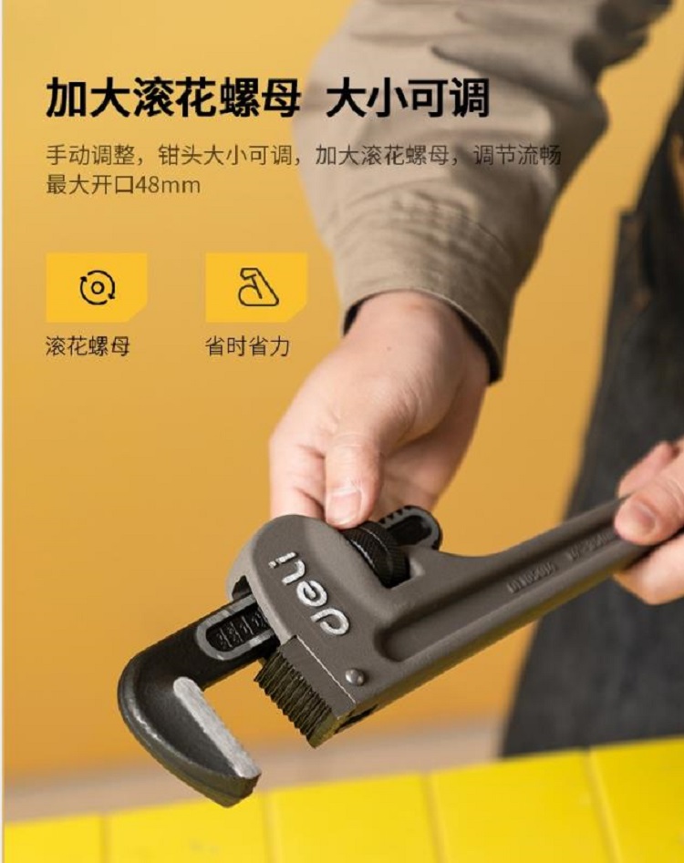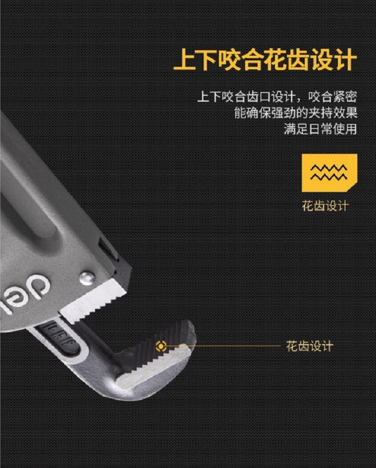 得力超輕鋁合金管子鉗硬度高,耐用,不易磨損。