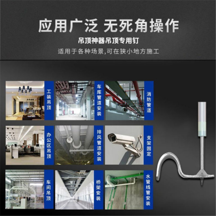鴻泰25管長釘可應用于工裝吊頂、消防管道、辦公區吊頂、排風管道安裝、支架固定。