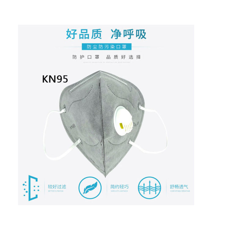 林盾KN95口罩灰色帶閥熔噴布層加活性炭加無紡不層,起到了防阻防塵的目的
