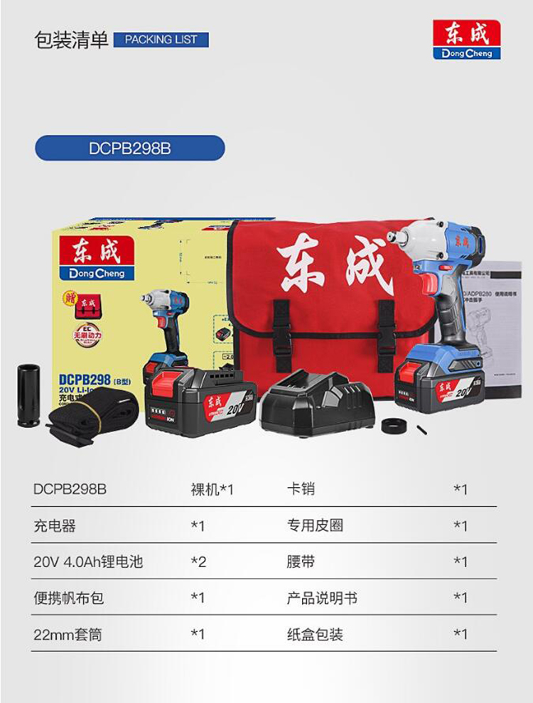 鋰電沖擊扳手20V架子工充電電扳手 DCPB298B相關參數
