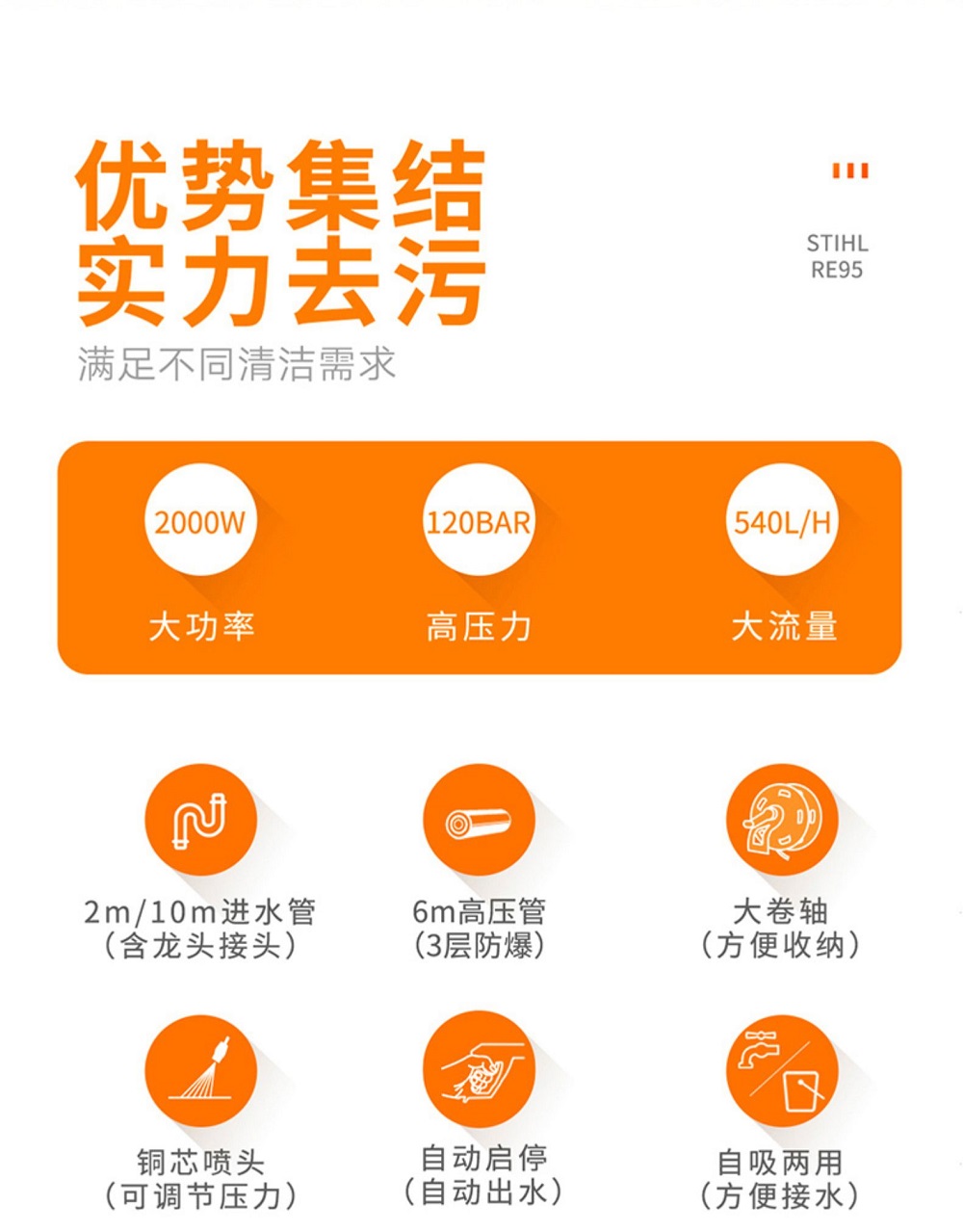 德國(guó)斯蒂爾STIHL家用便攜式洗車機(jī) 大功率自動(dòng)高壓清洗水槍泵RE95