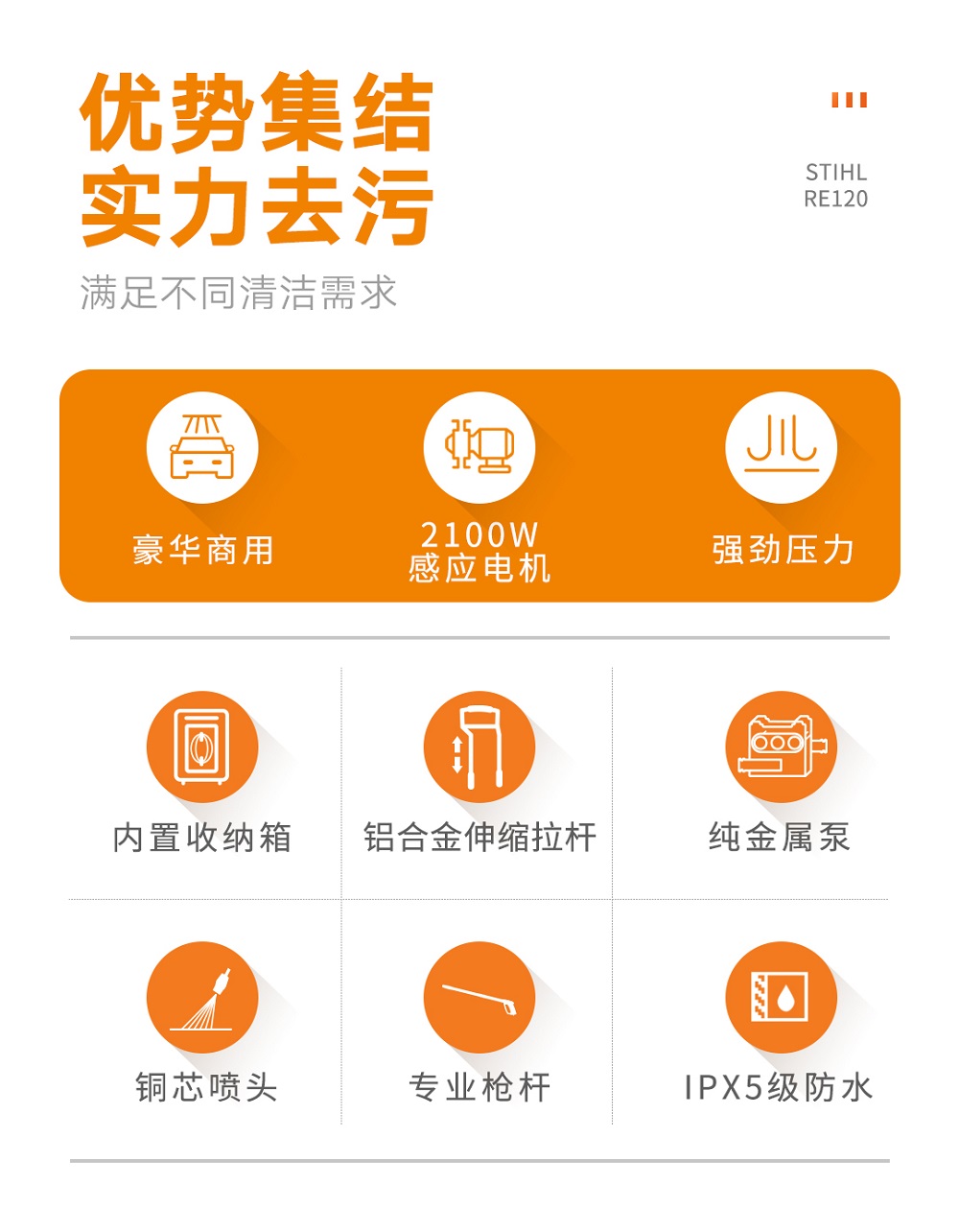 德國斯蒂爾STIHL 商用洗車機220V 高壓水槍清洗機 刷車神器 RE120