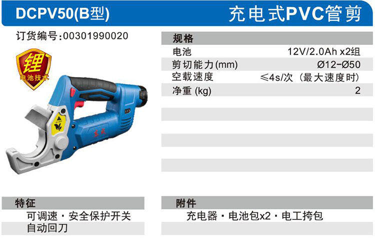 東成充電式PVC管剪DCPV50(B型)詳細參數。