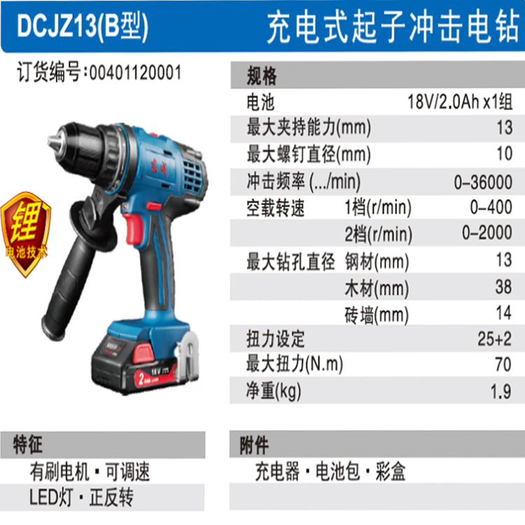 東成沖擊電鉆DCJZ13B型18V雙速充電起子機電鉆電錘東成電動螺絲刀