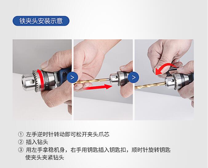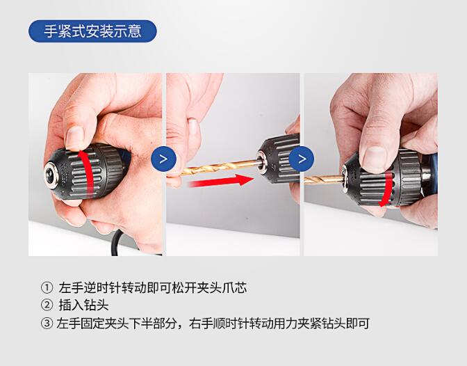 東成 手電鉆 J1Z-FF10-10 J1Z-FF10-10K手緊式安裝示意