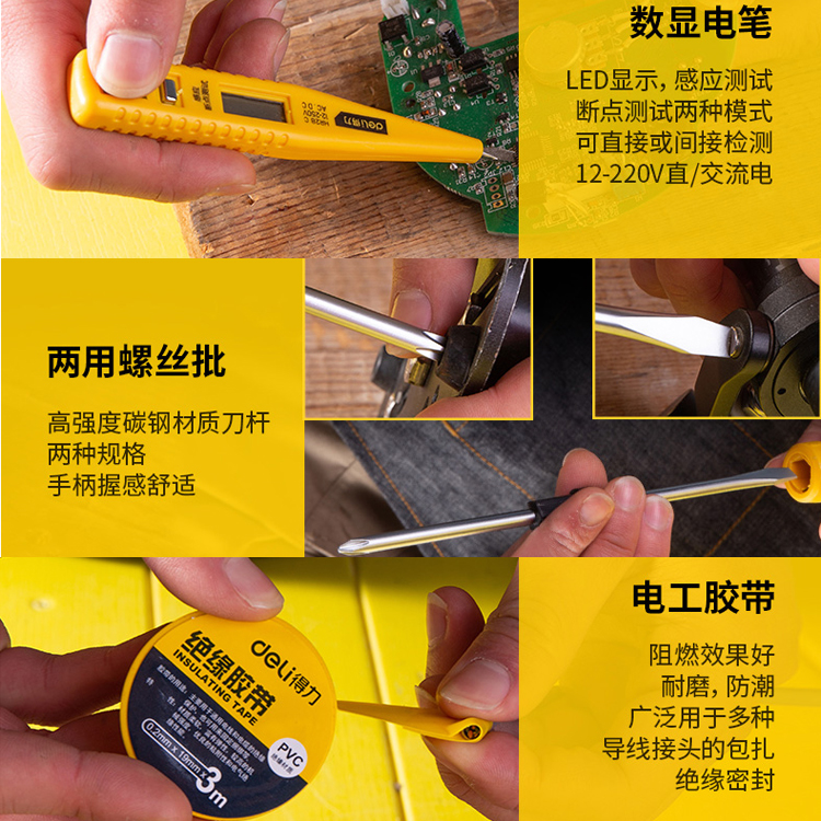 維修組套數顯電筆、兩用螺絲批、電工膠帶