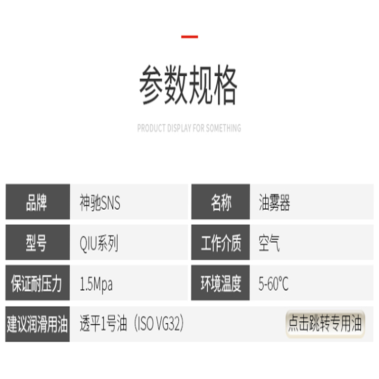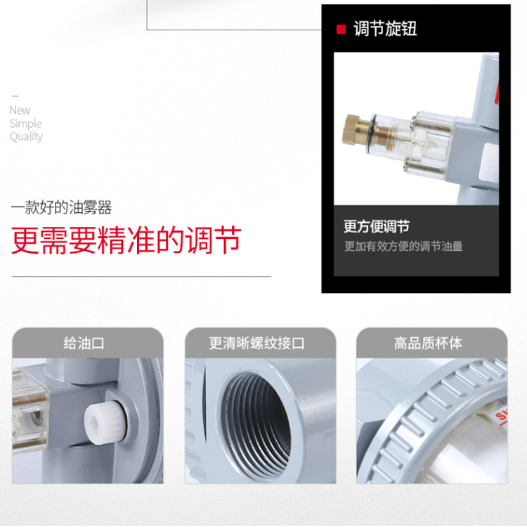 SNS神馳氣動油霧器有加長濾芯,過濾性強,帶有調節旋鈕,更方便調節。