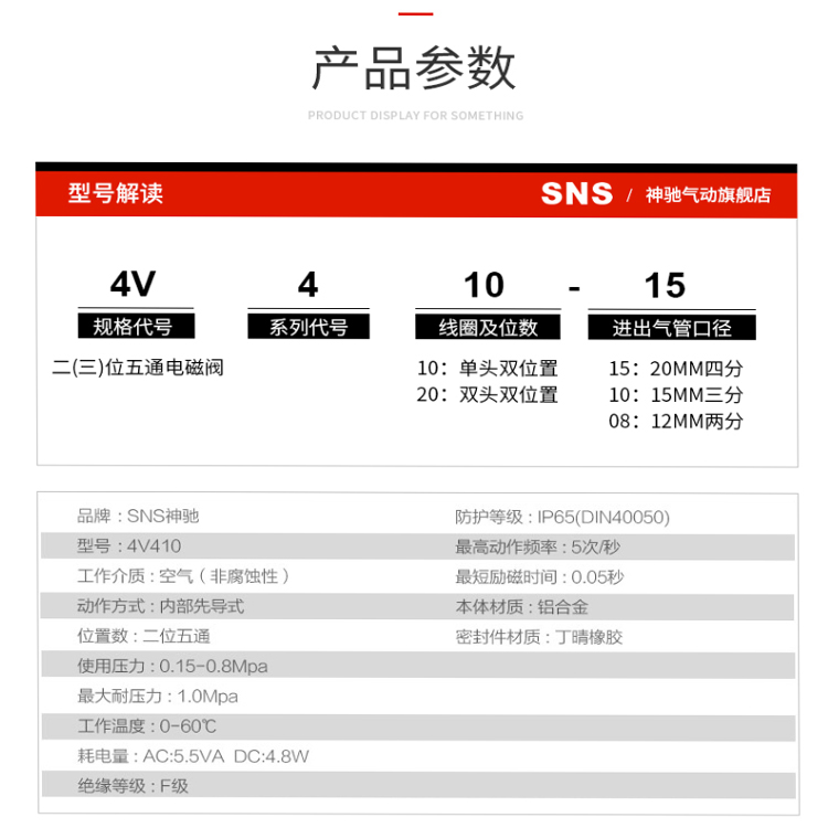 SNS神馳氣動電磁閥4v410-15氣動電磁控制閥ac220v氣閥開關(guān)電子閥