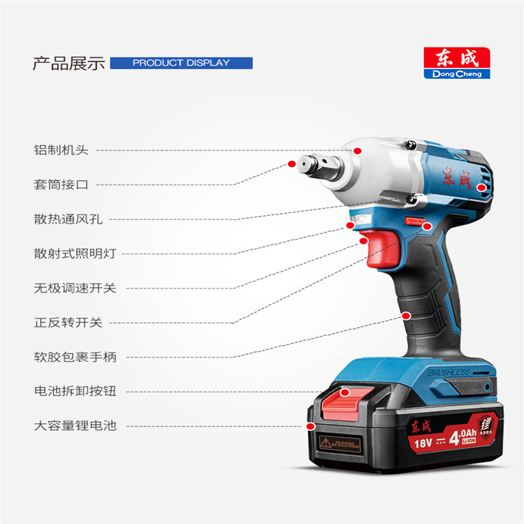 東成充電式無刷沖擊扳手DCPB298(B型)高效耐用,故障低壽命長,無碳刷損耗。