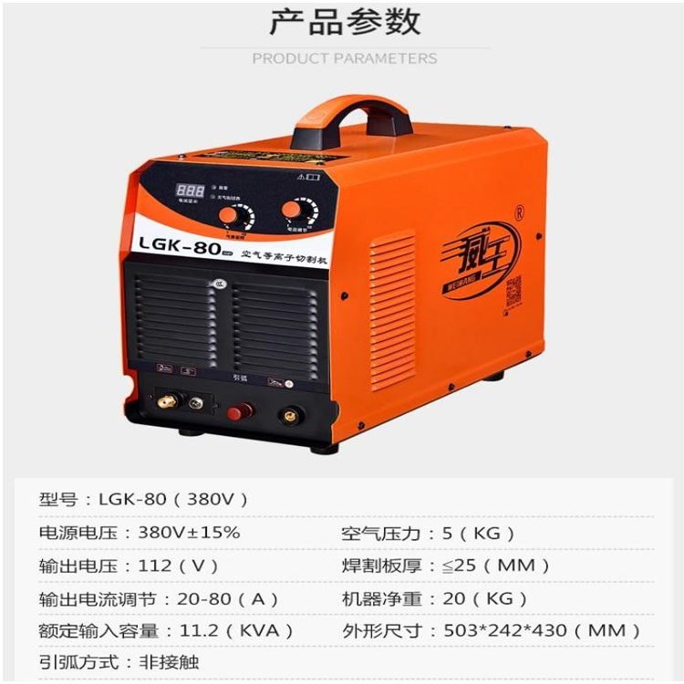 威王LGK逆變空氣使用廉價的壓縮空氣做切割電源,比火焰切割更為經濟、卓效