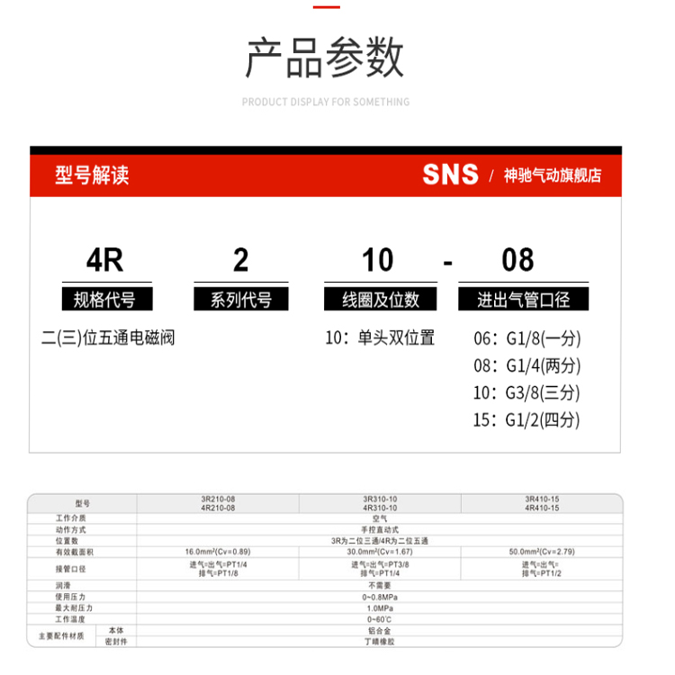 SNS神馳氣動電磁閥二位五通系列,更高強(qiáng)度鋁合金閥體,更加耐用。