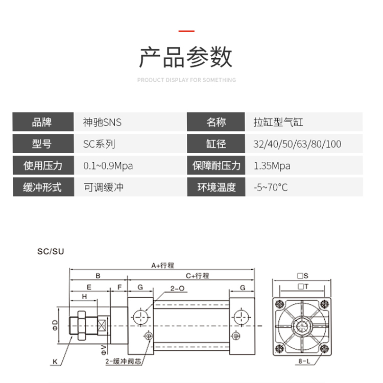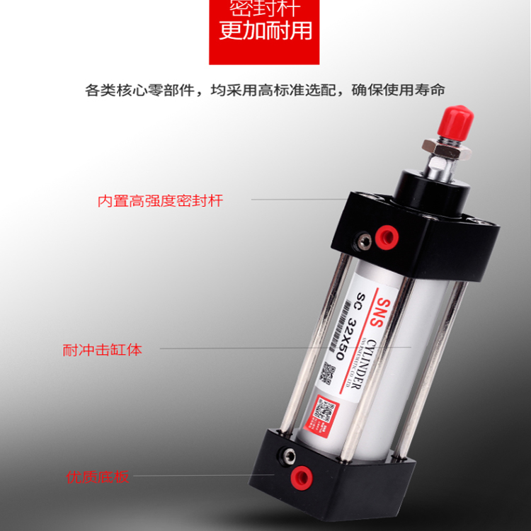 SNS神馳氣動氣缸鋁合金材質(zhì),高密封密封圈,保障缸體密封不漏氣;密封桿選用高