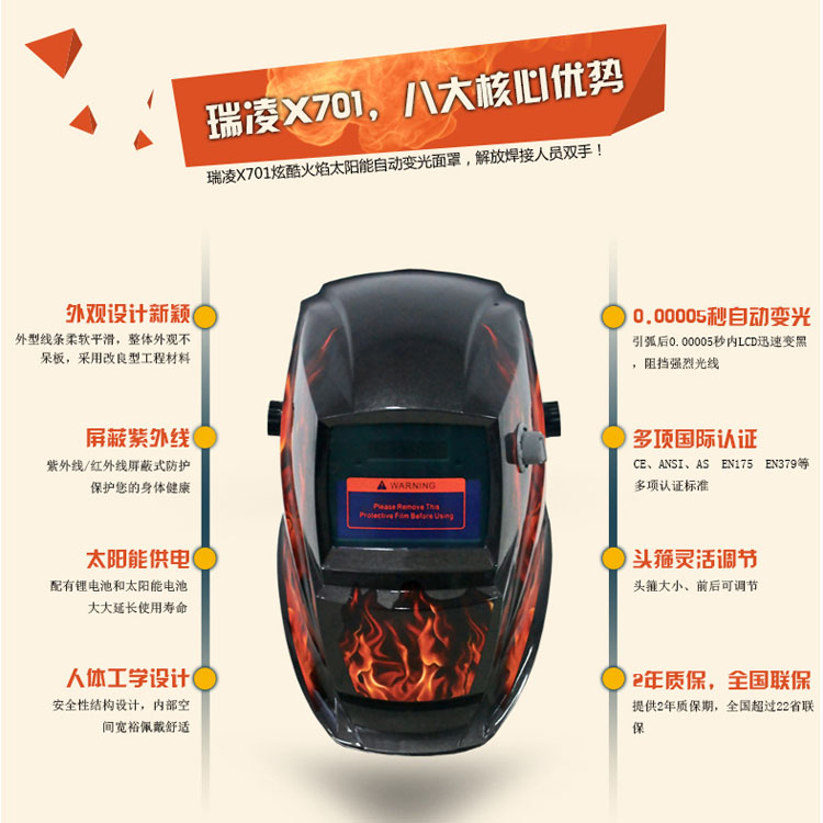 瑞凌X701頭戴式太陽能自動變光氬弧焊面罩焊帽