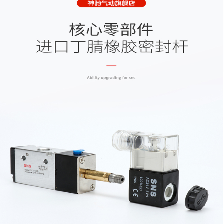 SNS神馳氣動電磁閥核心零部件,采用進口丁腈橡膠密封桿。