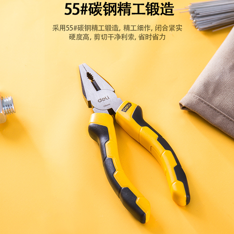 得力高碳鋼老虎鉗電工鋼絲鉗工業級斷線平口鉗多功能鉗子6英寸