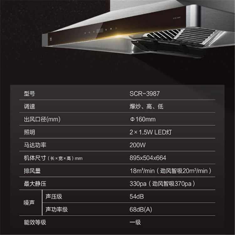 櫻花SCR-3987 雙炫風2.0吸油煙機頂吸式抽油煙機大吸力家用吸油煙機產品參數