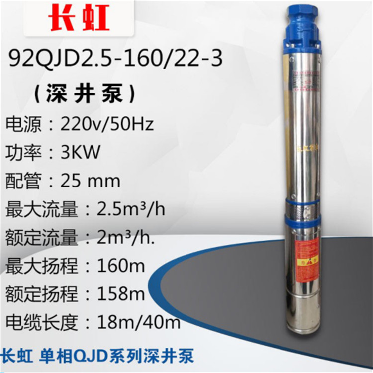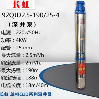 長虹 單相QJD系列深井泵力強勁、高效率、高強度、高揚程、壽命長、安裝便捷。