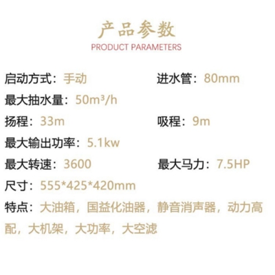 井用取水、農田遠距離輸水、園林大面積,噴灌、消防用水、挖藕、養殖業等。