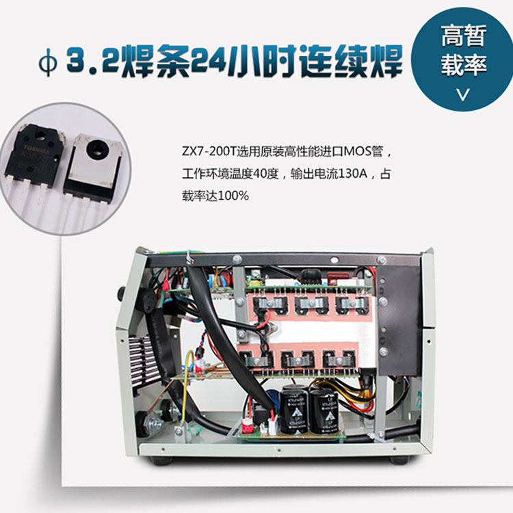 焊機(jī)選用原裝高性能進(jìn)口MOS管,工作環(huán)境溫度40度,