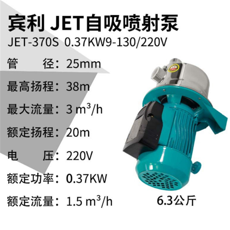 賓利(220V)JET不銹鋼自吸噴射泵0.37KW動力強勁、性能穩定、品質認證。