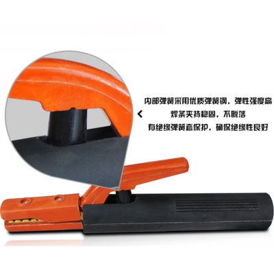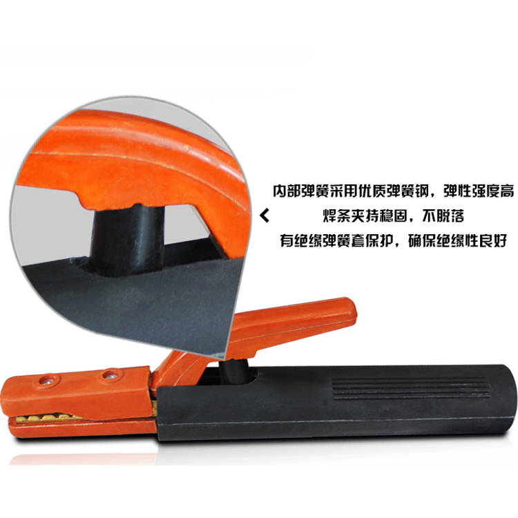焊機配件內部彈簧采用優質彈簧鋼,彈性強度高,焊條夾持穩固,不脫落