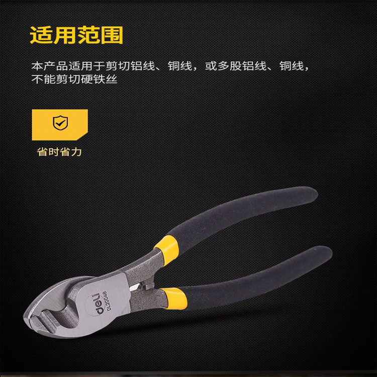 電纜剪適用于剪切鋁線、銅線,不能剪切硬鋼絲