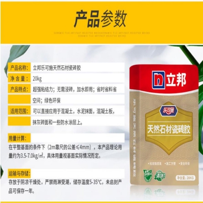 立邦樂可施天然石材瓷磚膠20kg,存放于陰涼干燥處,嚴禁雨淋受潮