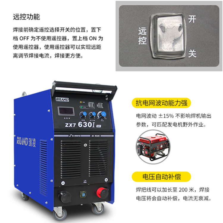 焊機焊把線可以加長至200米,焊接電壓將會自動補償,電流無衰減