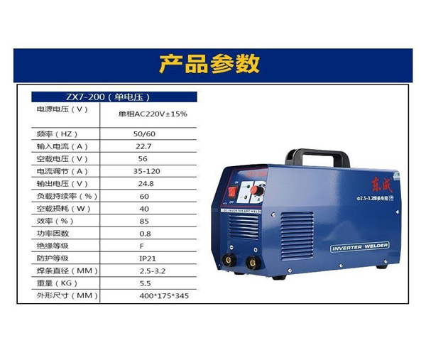 東成單相ZX7-200直流手工弧焊機,單電壓參數(shù)展示