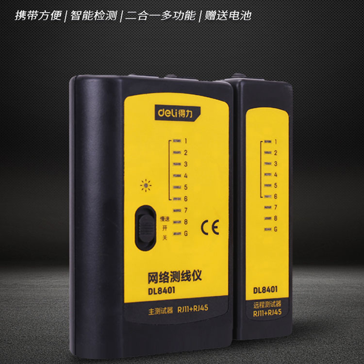 得力多功能網線測試儀電話線測線儀網絡信號通斷檢測器工具
