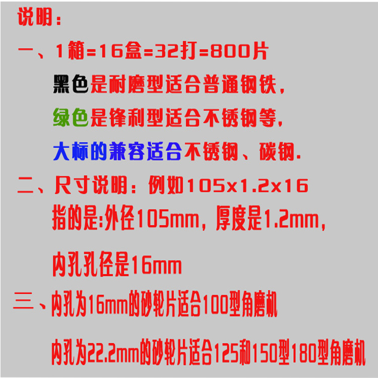 珠海大象超薄切割片黑色是耐磨型適合普通鋼鐵,綠色是鋒利型適合不銹鋼等。