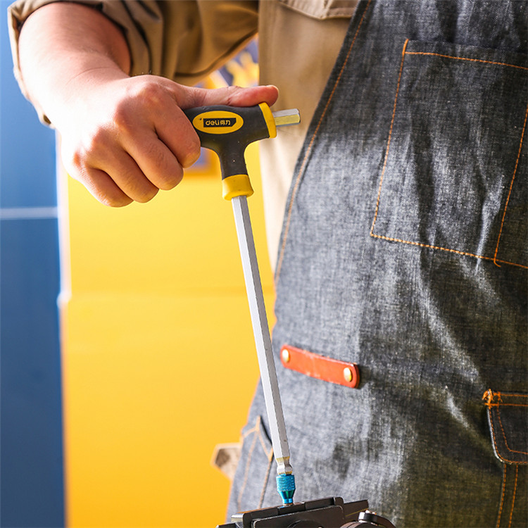 得力T型球頭內(nèi)六角扳手套裝螺絲刀五金工具方扳手鉻釩合金