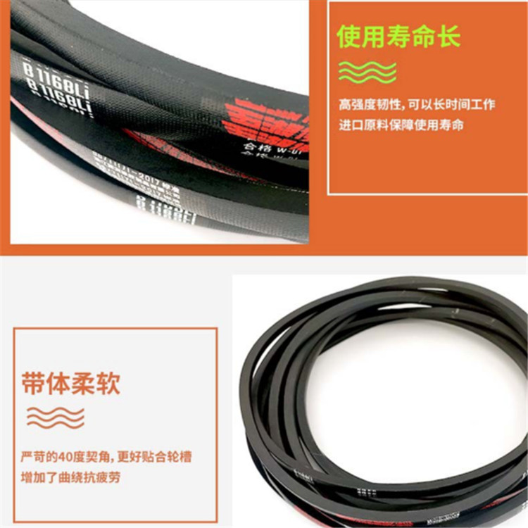 五湖 B型三角帶優異性能的混合膠,伸張層、壓縮層。