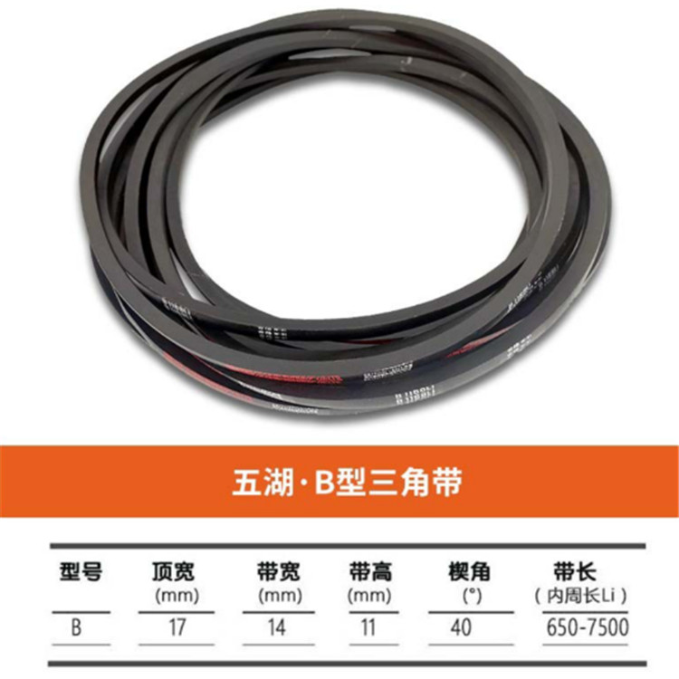 五湖 B型三角帶高強度、低伸長,耐磨、耐高溫等特點。