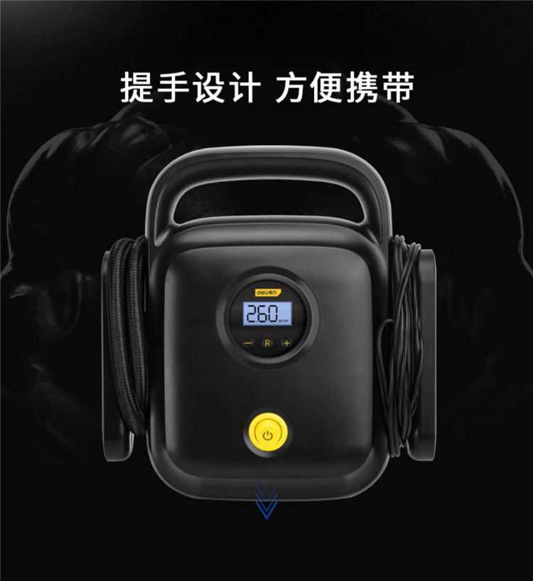 得力(deli) 預設胎壓數顯車載充氣泵汽車輪胎12v便攜式電動打氣泵DL8065黑